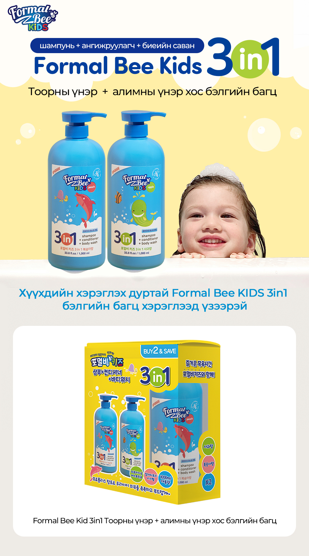 Formal Bee Kids 3in1 ТООРНЫ ҮНЭР + АЛИМНЫ ҮНЭР1000ml хос савлагаатай бэлгийн багц